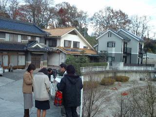 ヒゲの家です まん中の茶色の屋根の右側にに増築した太陽光発電のある家が 今回の取材場所です 先ずは全景の撮影から・・・