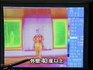 こちらは外壁があって、そこに人間が立っている例です。 外壁の温度は40℃を越えるような温度になっています。 ⇒