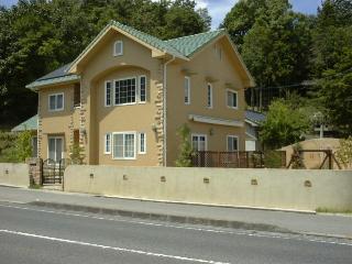 ゆったりとした敷地と、緑豊かな山を背景に有
