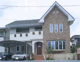 ![]() | タイル貼りとサイディングのコンビネー ションの外壁。 アメリカ・アンダーセン社のポウウィンドウ がアクセントになった美しい洋風の外観。 |