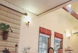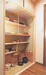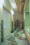お茶会が開ける風情のある和室だが、 将来階段の上り下りができなくなっ たとき、1階だけで暮らせるように、 と考えられて設けられた和室でもあ る。 | 茶道をたしなむ三枝子 さんの希望で、1階廊下 (和室の裏側)に水屋を 設置。 この部分のデザインは 茶室設計の専門家に依 頼している。 | 和室に面して内路地があり 灯籠やつくばいが。 室内でありながら日本庭園 のような風情が漂い、防水 工事が施してあるので打ち 水も楽しめる。 |