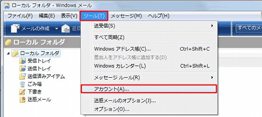 2.メニューバーの[ツール(T)]→[アカウント(A)]をクリックしてください。