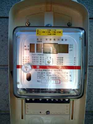 電化住宅になるので、新しく季節別時間帯別の電力量計を取り付けます。 電力量計とは、使った電気の量を測る装置のことです。引込み線からこの電力量計に電気は入ってきます。 左の写真の右でぶら下がっているのは古い電力量計です。