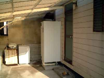ガスボイラーの位置に置かれた電気温水器 今夜から入浴可能です。 15:00 Y様邸あっと電化パック作業終了 (ガスオーブンとボイラーはY様が処分されるそうです)。 ビフォア アフター ビフォア アフター